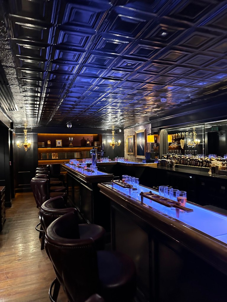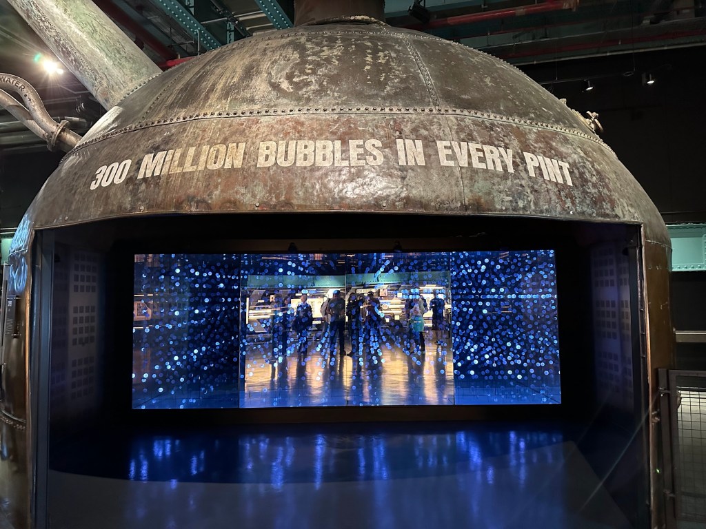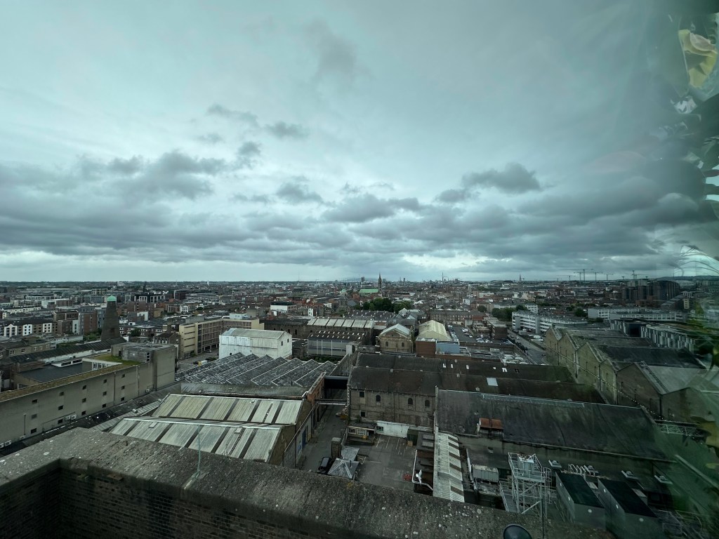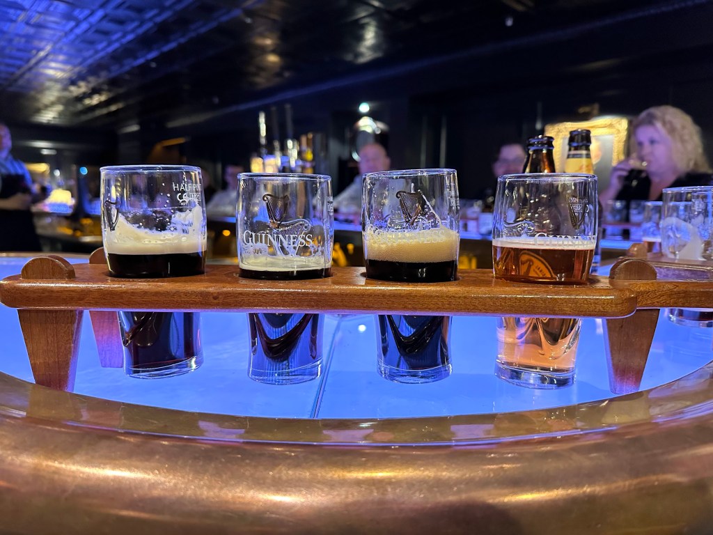 Once inside, it was immediately apparent that the Guinness Storehouse is the Disneyland of Guinness. Multiple levels, very flashy and curated, and overall, highly entertaining. Our particular tour took us out of the crowds and into a small, private room set up like a bar. Our host took us through a flight of different Guinness beers, explaining the history of the beer and the production, and finished with teaching us how to correctly pour a Guinness. It was a really great experience and added a lot to our enjoyment of the overall facilities. Afterwards, we went up to the top floor and enjoyed the view, though we didn’t take advantage of the two free pints we had tickets for as we were already a little tipsy at this point.