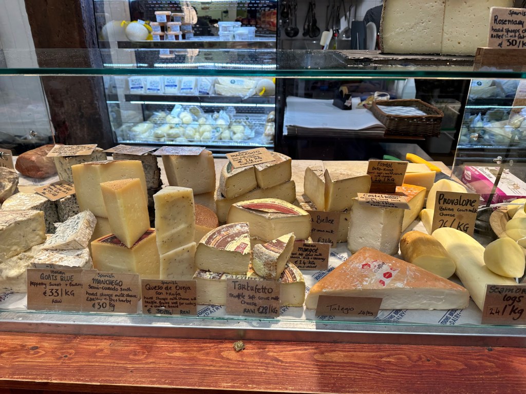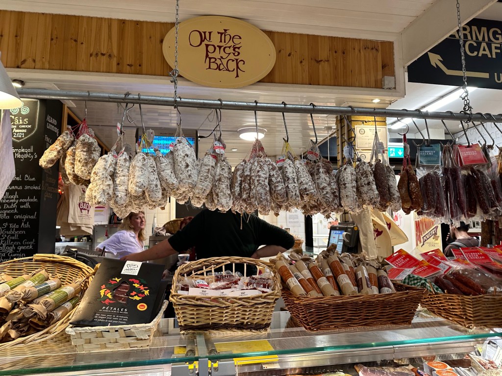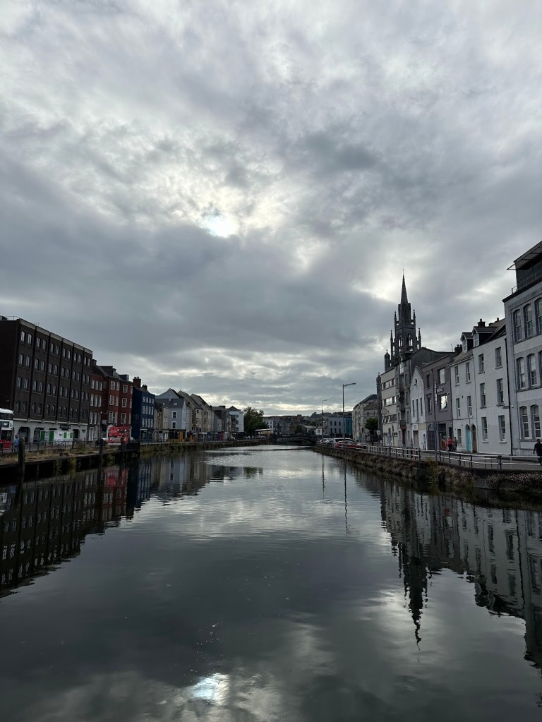 Cork was an unexpected delight. I didn’t really know much about it, and the only big plan we had for our stay there actually took us out of Cork and into the countryside, to a small town called Midleton that houses the distillery that makes Jameson, Powers, and other Irish whiskey brands. So we arrived in Cork with no expectations and found an adorable, walkable town with a very cute downtown area, two interesting markets, and a split river whose level rose and fell dramatically with the tides.