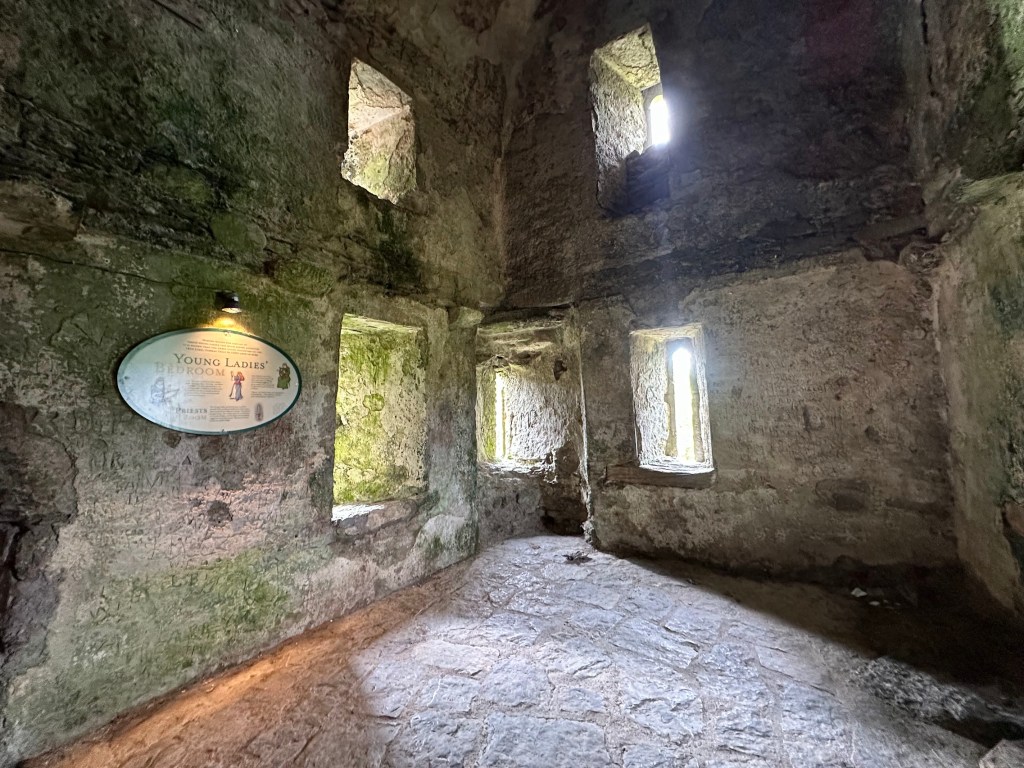 Blarney Castle was a bit of a spectacle. There was a half hour wait to get up to the top of the castle, and to kiss to stone if you wished, but they had various placards set up throughout the interior of the castle as you wound your way upstairs. I would not say that Blarney Castle convinced me of castle living – despite the size of the castle, the interior was quite tiny. I suppose that’s the difference between a small lord and those who ruled from Sforza Castle, for example. I declined to kiss the stone, especially after the man in front of us in line told a jolly story about how the last time he visited, his wife had a cold sore and their group made her kiss the stone last.