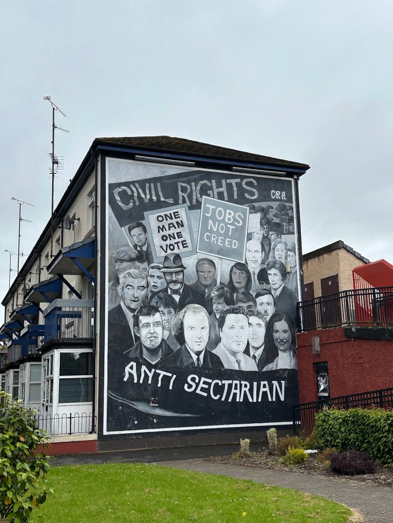 All that being said, Derry is where the infamous Bloody Sunday occurred, so the religious and political tensions are still finely honed there. We visited the Museum of Free Derry, which naturally has a corresponding opposition option of the Siege Museum, though we didn’t get to the latter. Derry was originally a walled city, so we walked the walls and saw some more Cathedrals and the Derry Girls mural, and that was largely the sum of the things available to do in Derry. It probably should have been a day trip.