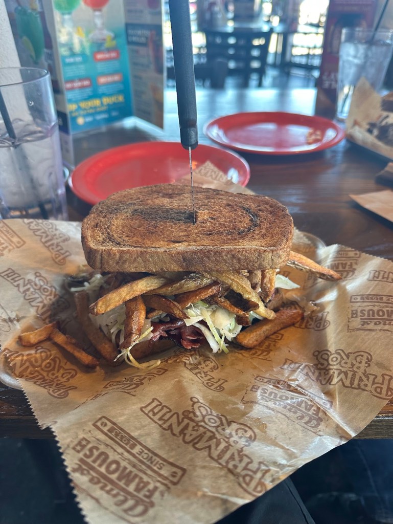 Max’s Allegheny Tavern has existed since 1977, but the building it’s located in has existed since the 1860s. For a good portion of its lifetime, it was the Hotel Rahn, and the interior layout does not seem to have been updated much over the last century+ – very homey, not at all pretentious. Our waitress was friendly and funny, and very proud of Pittsburgh in general. We split the two plates you see here, plus a large pretzel that, when we ordered it, the waitress commented, “Oh good choice, those are as big as a steering wheel.” Not quite that large, but approaching it, for sure. Everything was delicious.