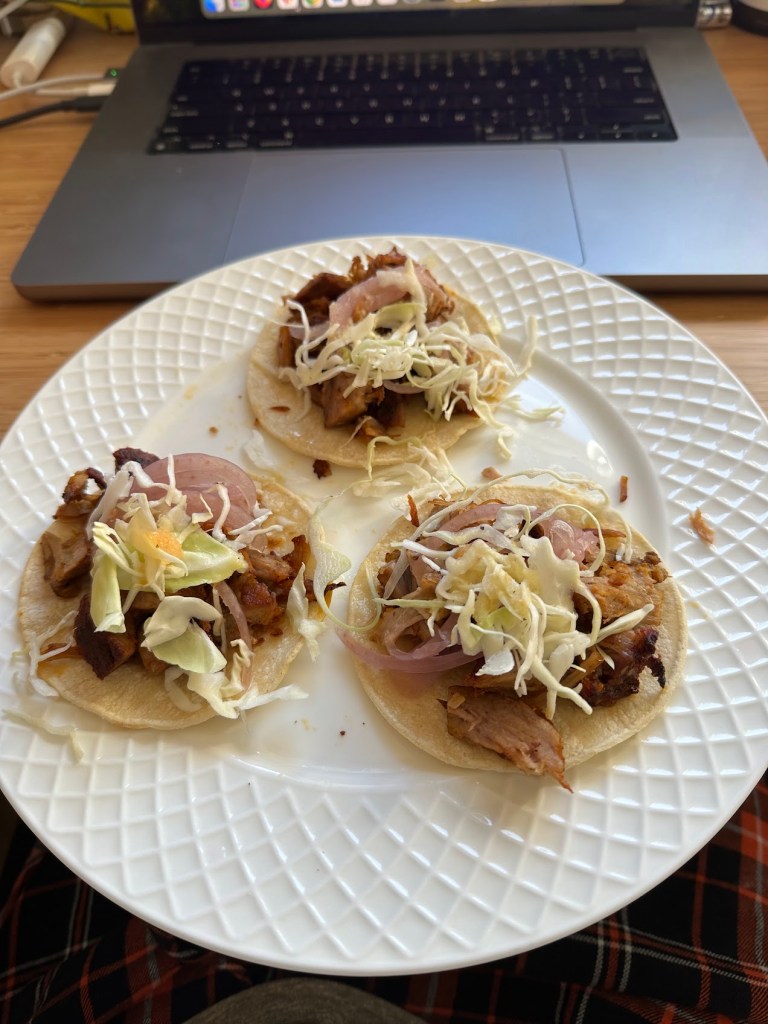 Cochinita pibil – I always try to keep banana, plantain, or similar leaves in the outside freezer, specifically for this recipe. Rather than using a slow cooker, I wrap the marinated pork shoulder in the leaves and bake it in the oven all day. This does some really nice things to the fat in the meat, and imparts the flavor of the leaves along with the achiote marinade.